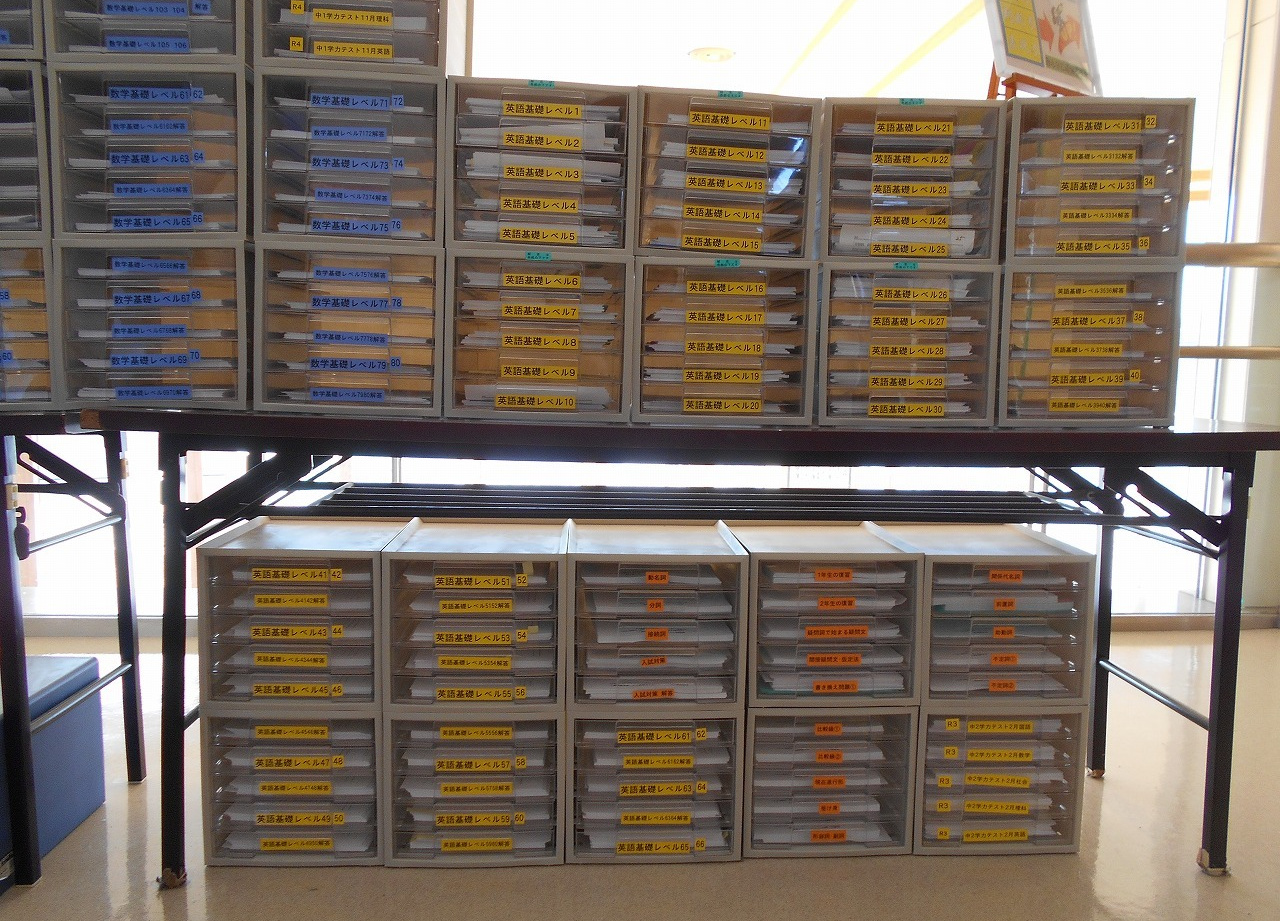帯広第一中学校では、主体的に家庭学習に取り組めるように、英語・数学のレベル別プリント1~99やチャレンジテスト、各種テストの過去問題の問題、解答をいつでも持ち帰れるシステムになっています。ぜひ、活用して下さい。